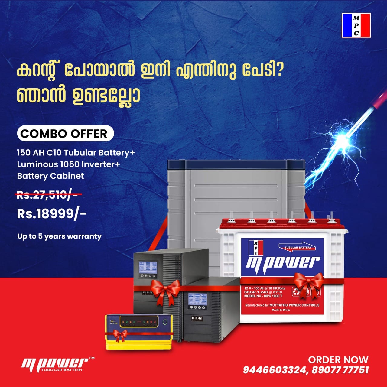 M Power Tubular Battery for Home, Office & Shops | MPC 1000 T 150Ah